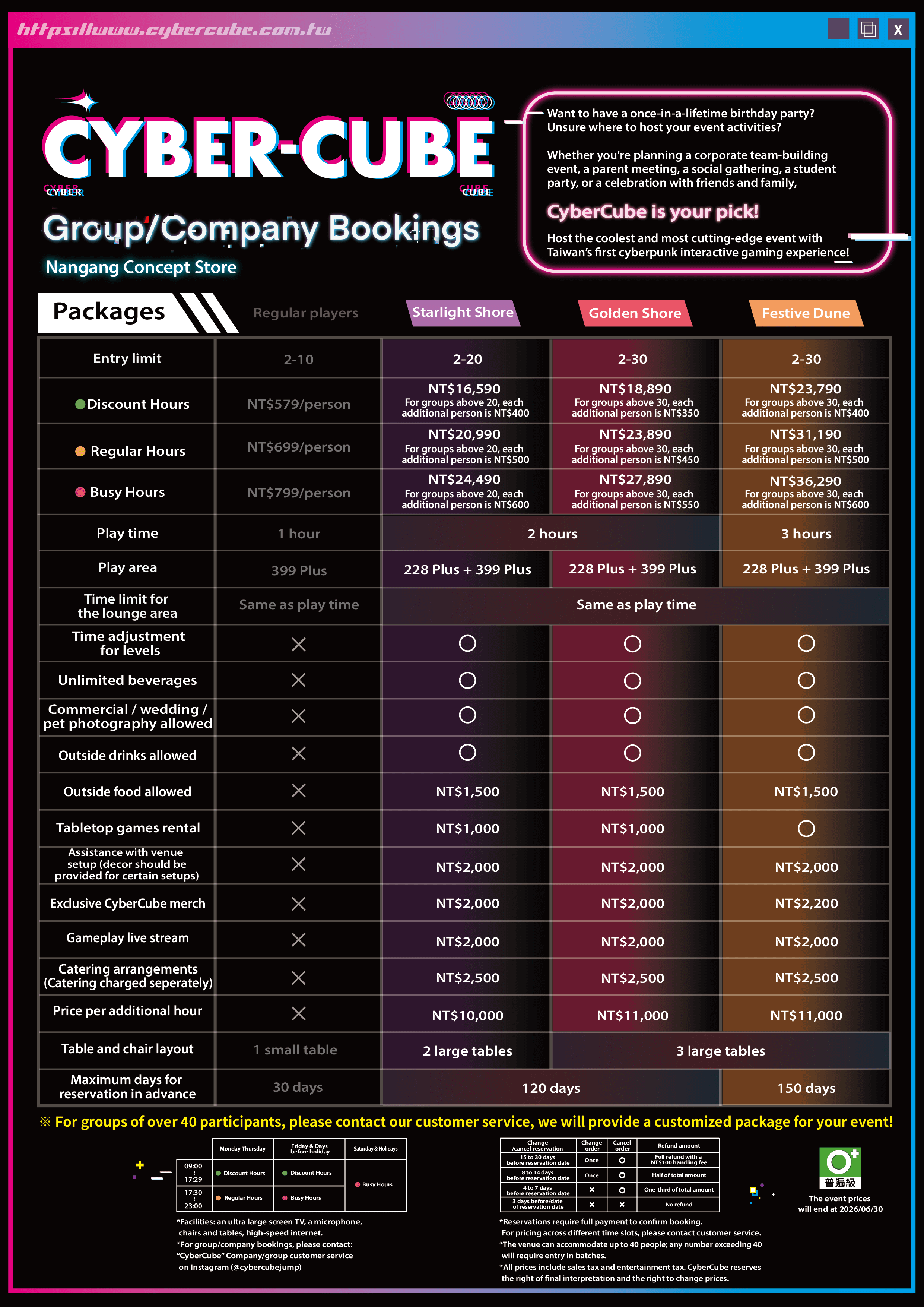 All individuals entering the venue will be counted, and fees will apply based on the selected package. Guests without a player ticket must depart the premises within 15 minutes. Please note that re-entering the venue after departure will result in immediate billing of the applicable fees.