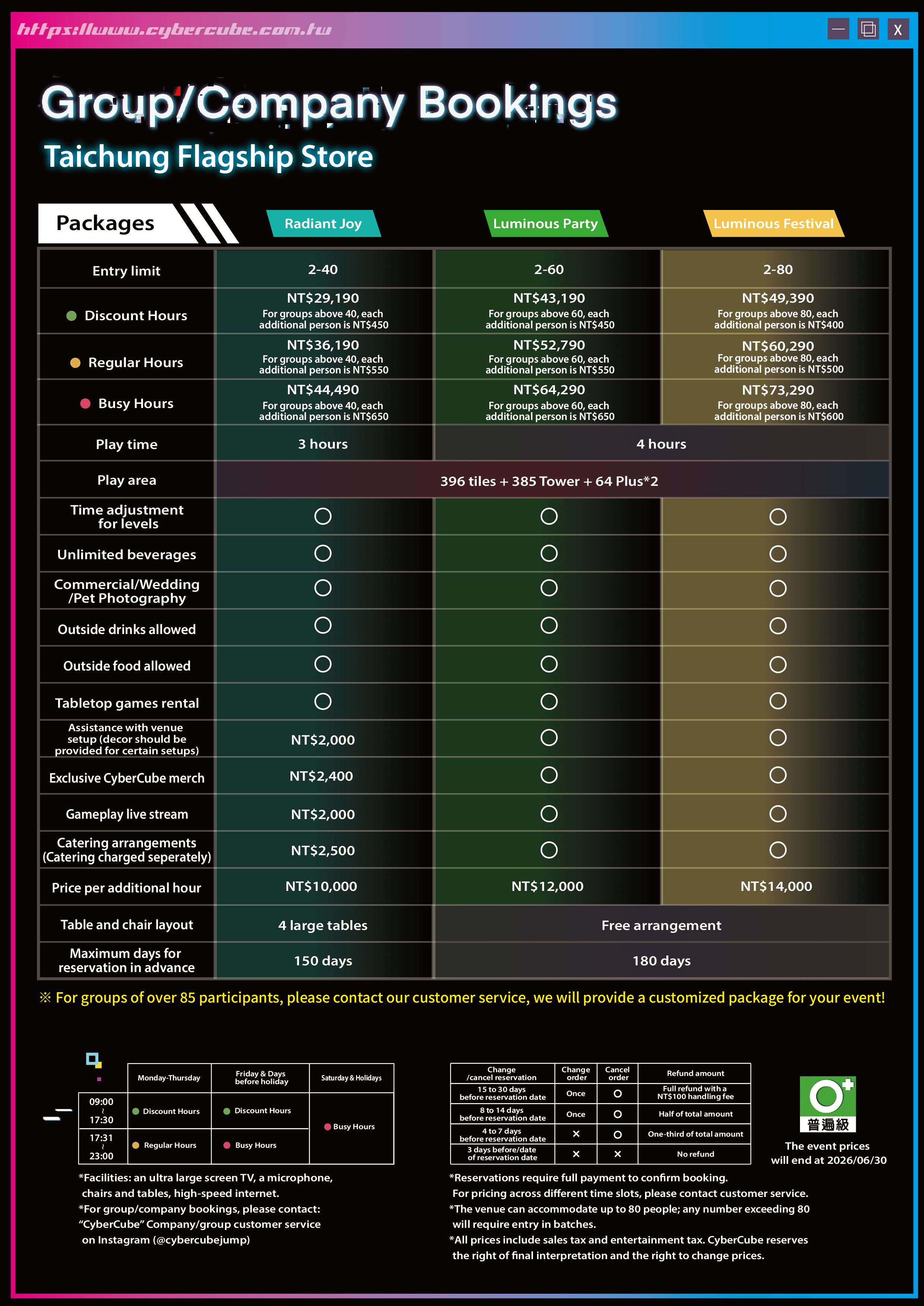 and add-on request as early as possible. Radiant Joy Package includes a 3-hour experience, covering game