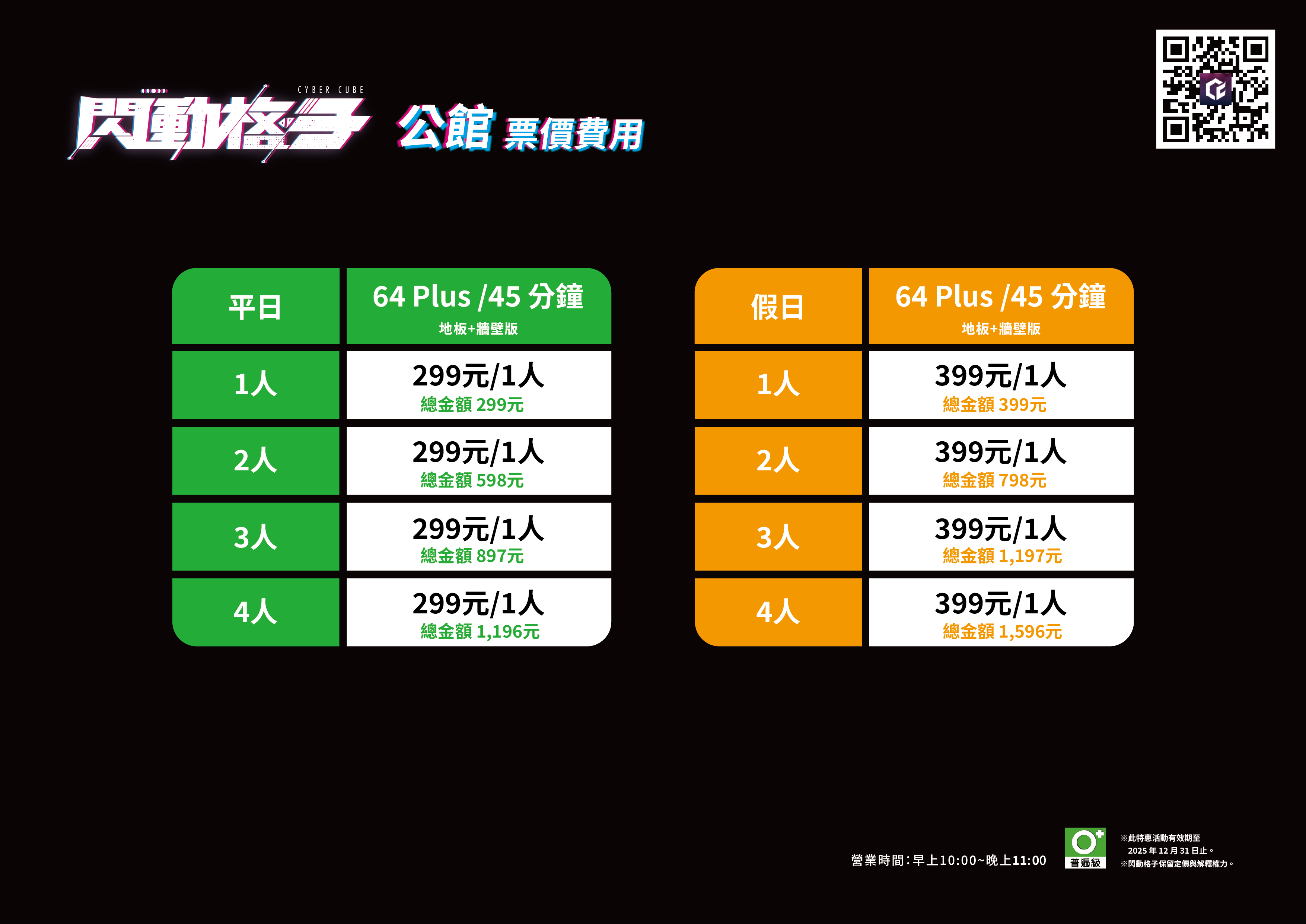 1. 僅可遊玩 64 格類型場域,需購買玩家票,並且全程由法定監護人陪同。