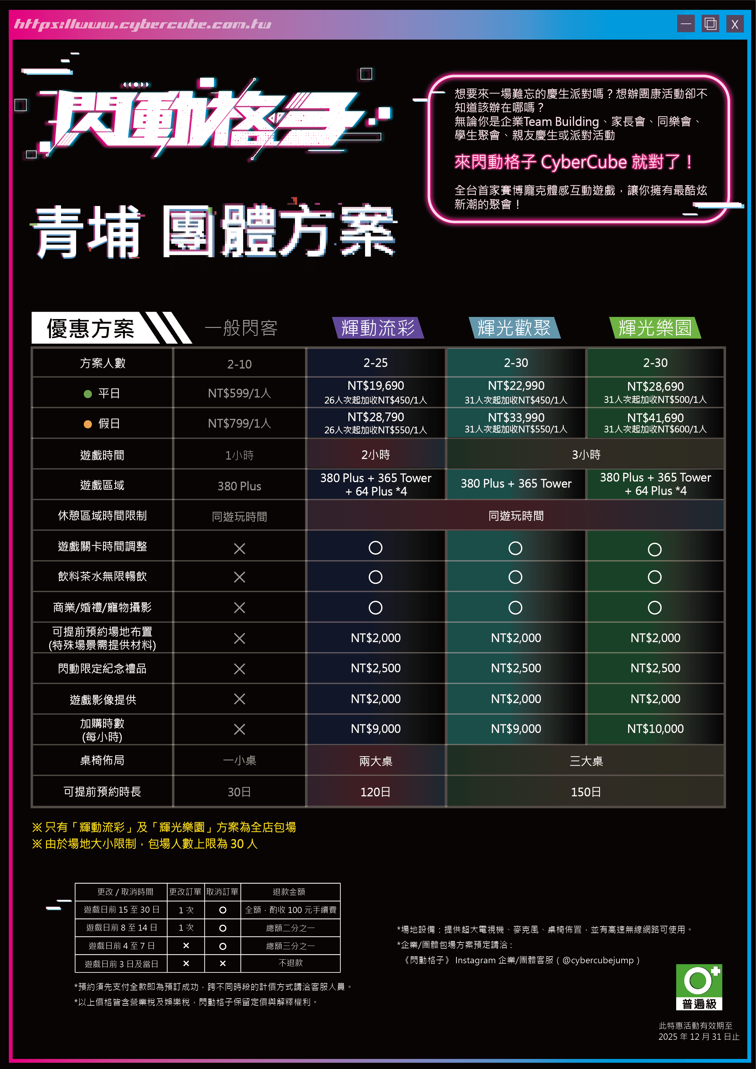 方案適用人數上限為 30 人,若玩家人數超過上限,請以加購玩家票的方式選擇超出之人數。