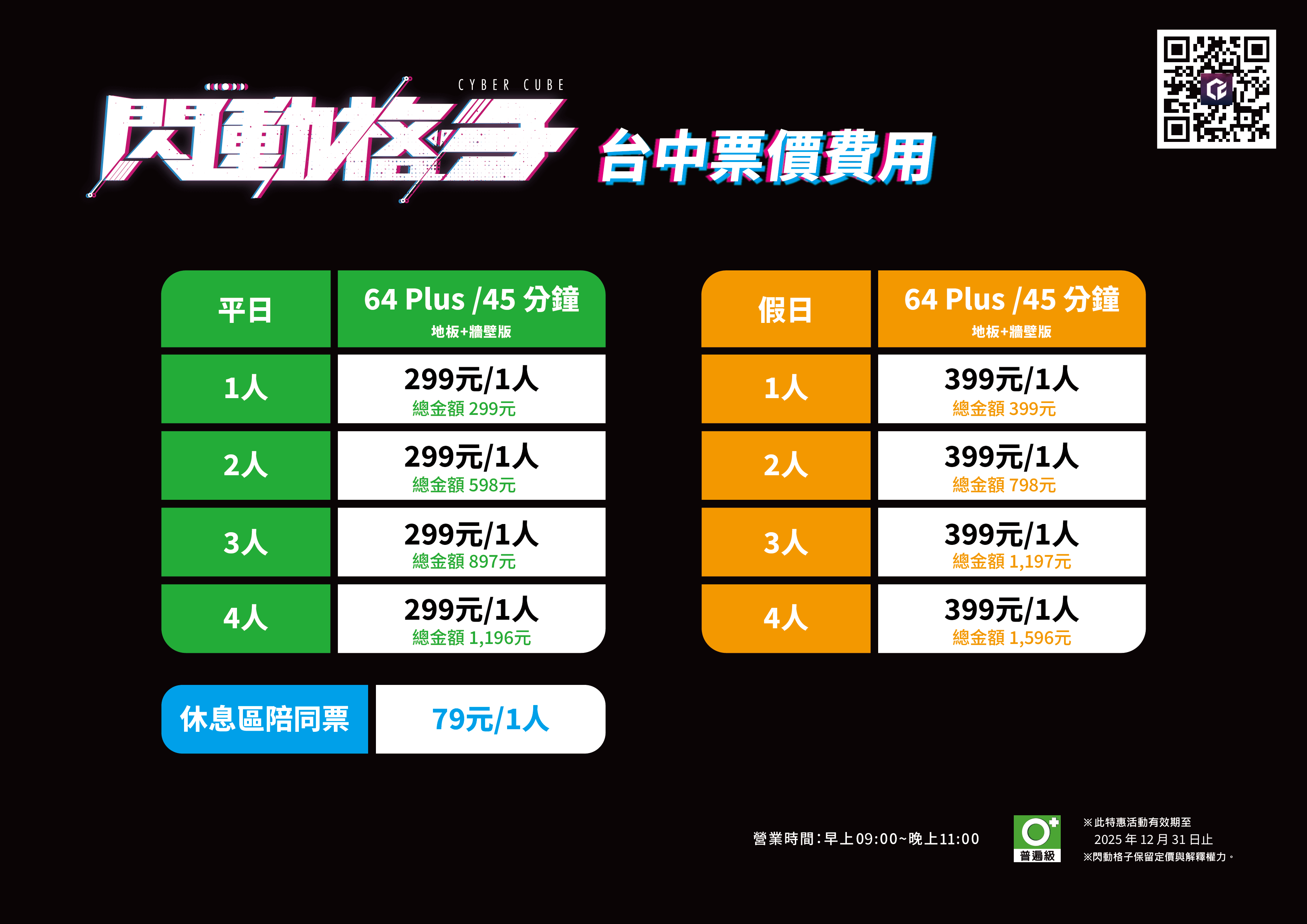 ▶︎ 5 歲以下兒童免休息區陪同票,若入場遊玩須購買玩家票喔!