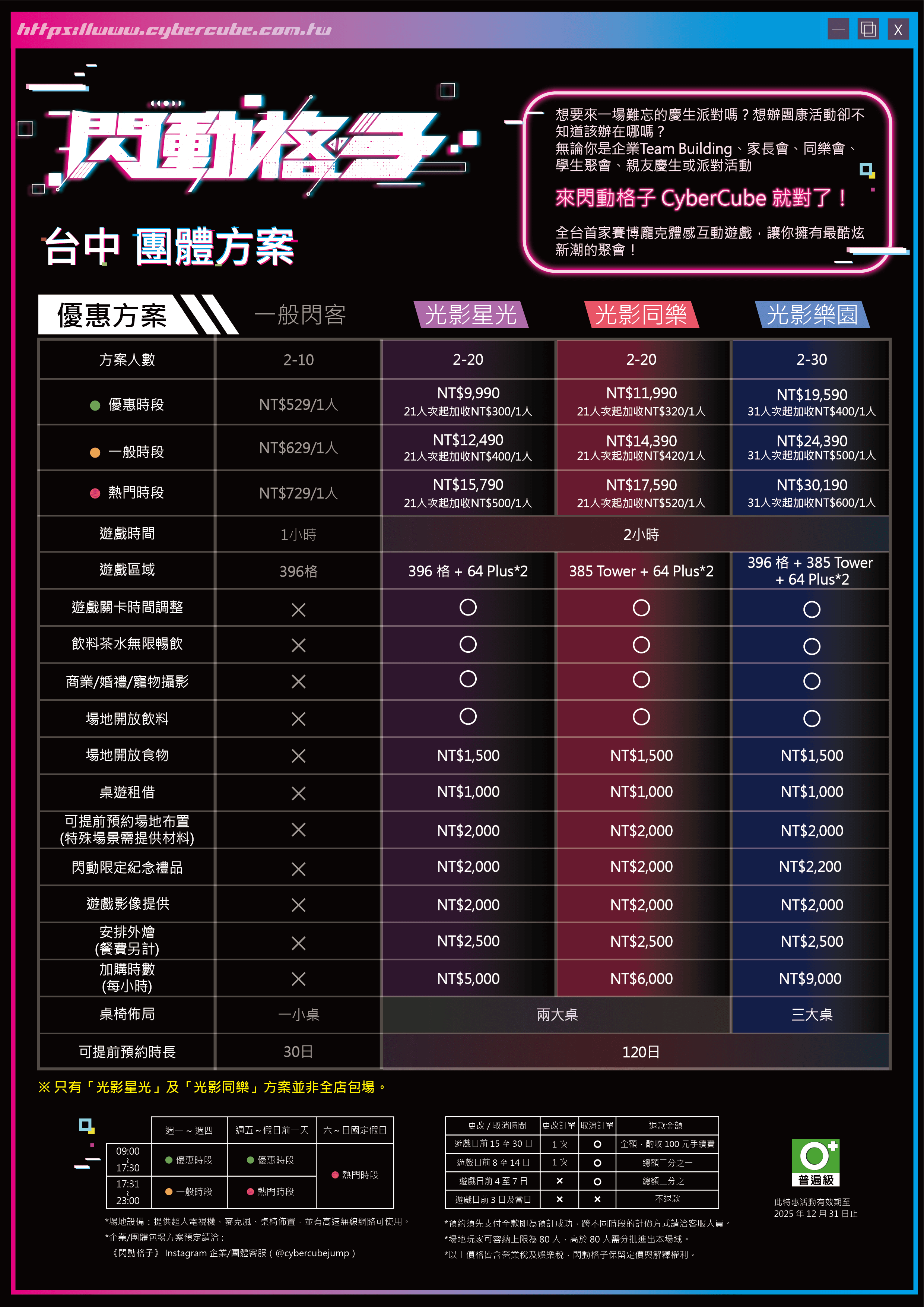 方案適用人數上限為 20 人,若玩家人數超過上限,請以加購玩家票的方式選擇超出之人數。