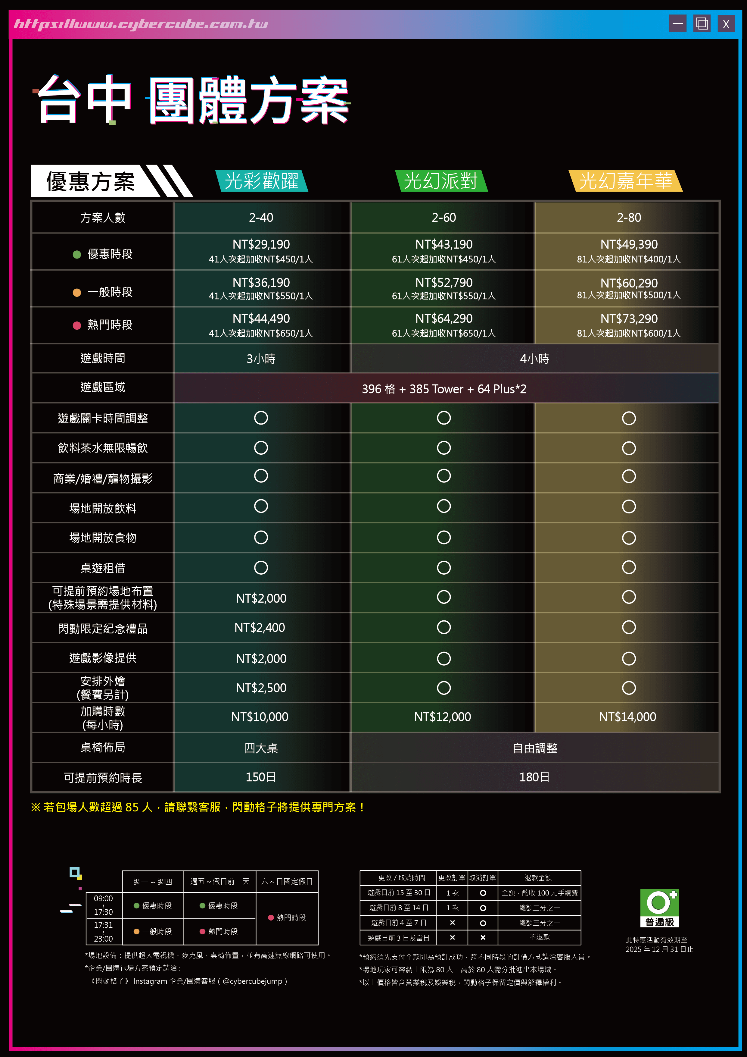 方案適用人數上限為 60 人,若玩家人數超過上限,請以加購玩家票的方式選擇超出之人數。