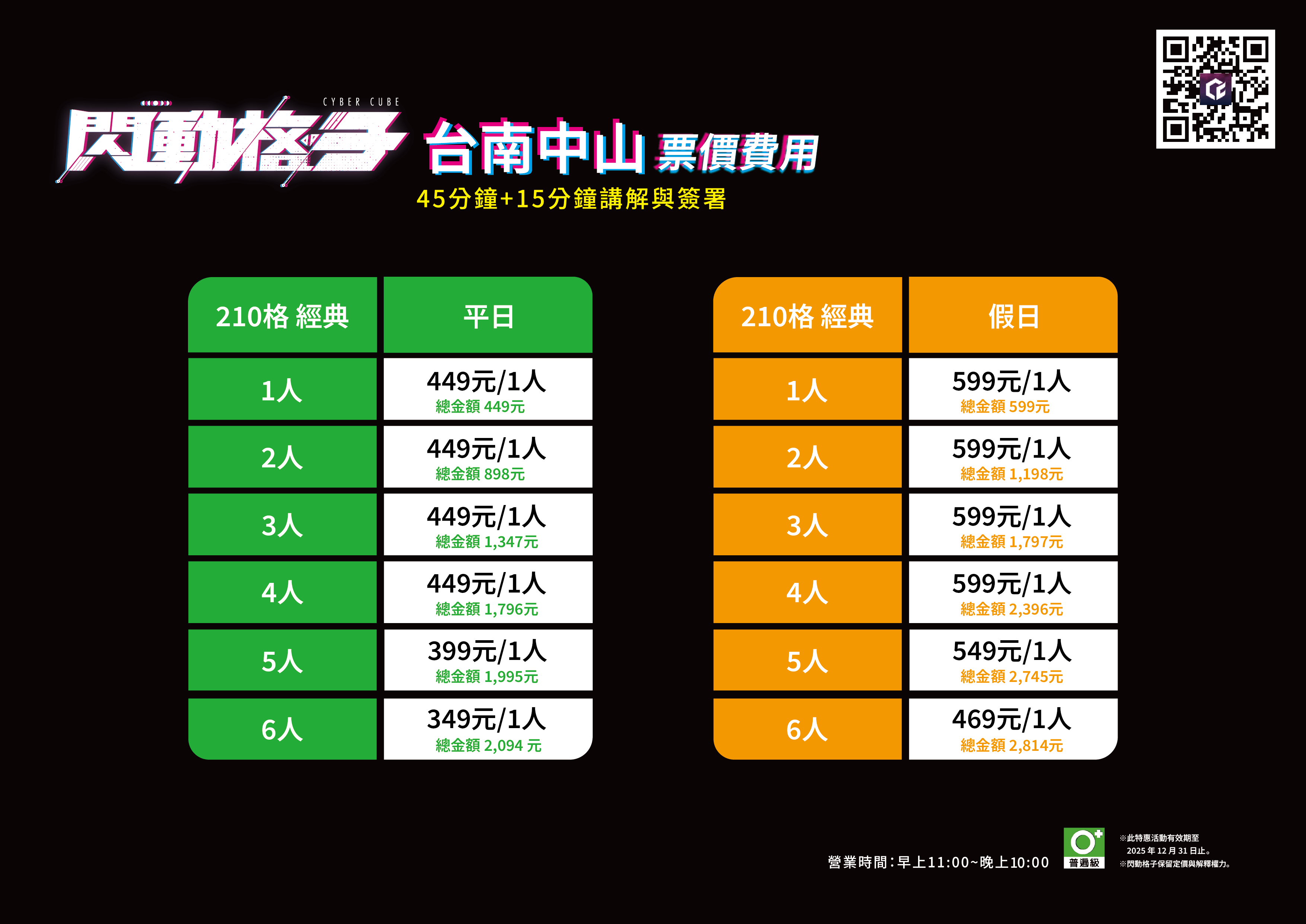 ▶︎ 每位玩家皆需購買一張玩家票,票券僅限對應的固定人員使用,無法輪流或共用。