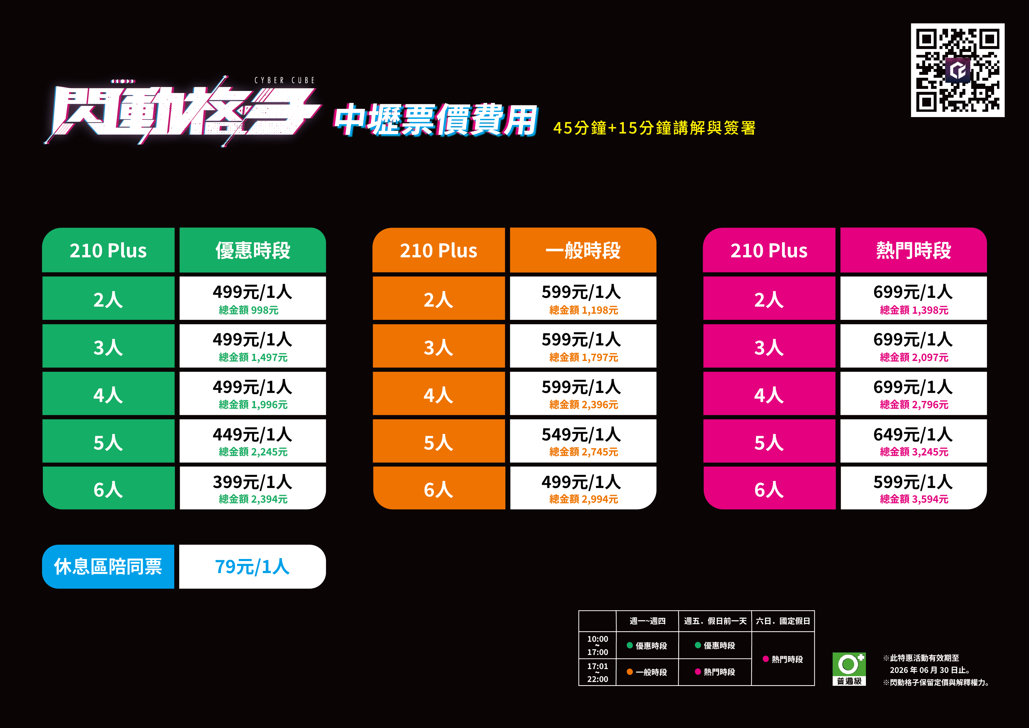 ▶︎ 未滿 18 歲的青少年必須由一位法定監護人陪同在場或攜帶簽署完成的聲明書,方可進入並體驗遊戲(未成年相關規定請參考官方網站)。