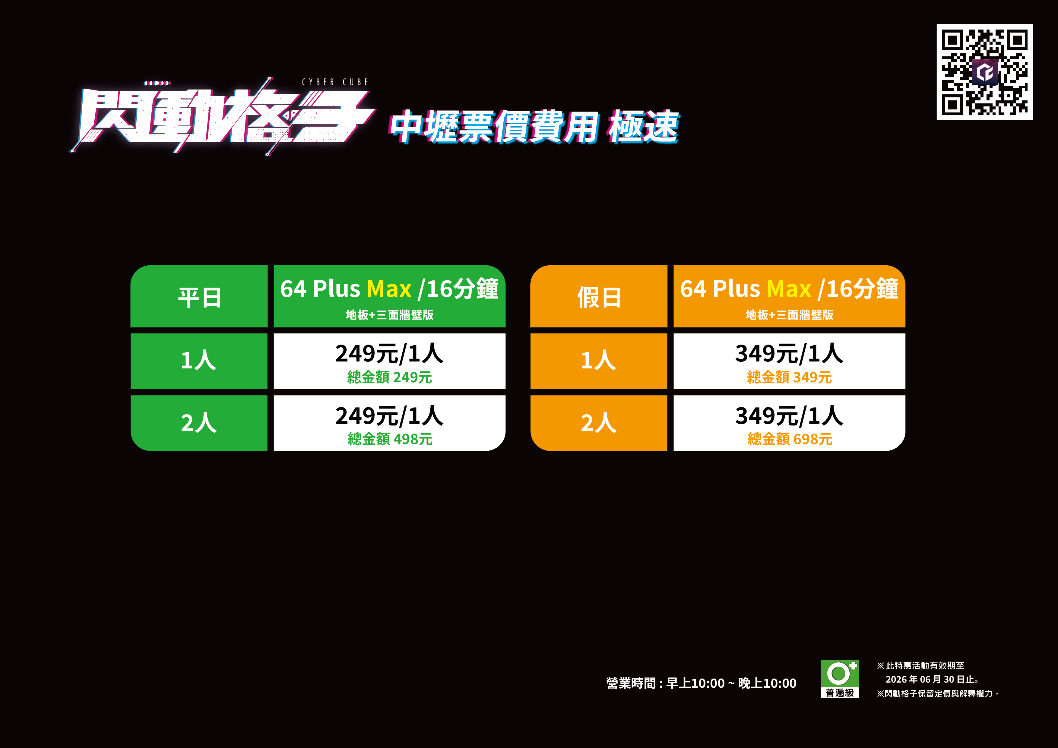 1. 購買玩家票挑戰64格類型場域,需由法定監護人全程陪同。