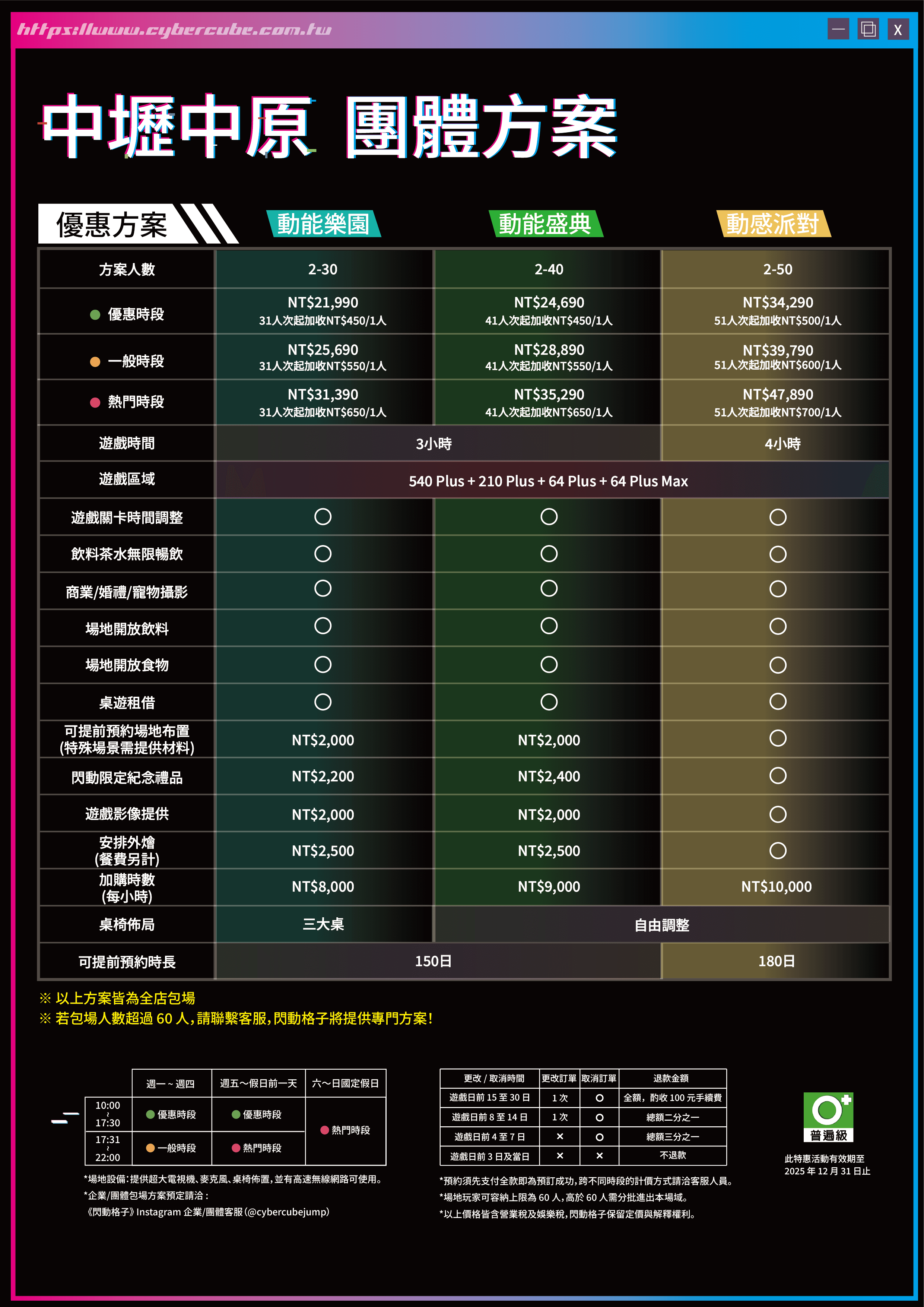 此方案並非全店包場,其餘場地可能仍會有閃客進行遊玩。