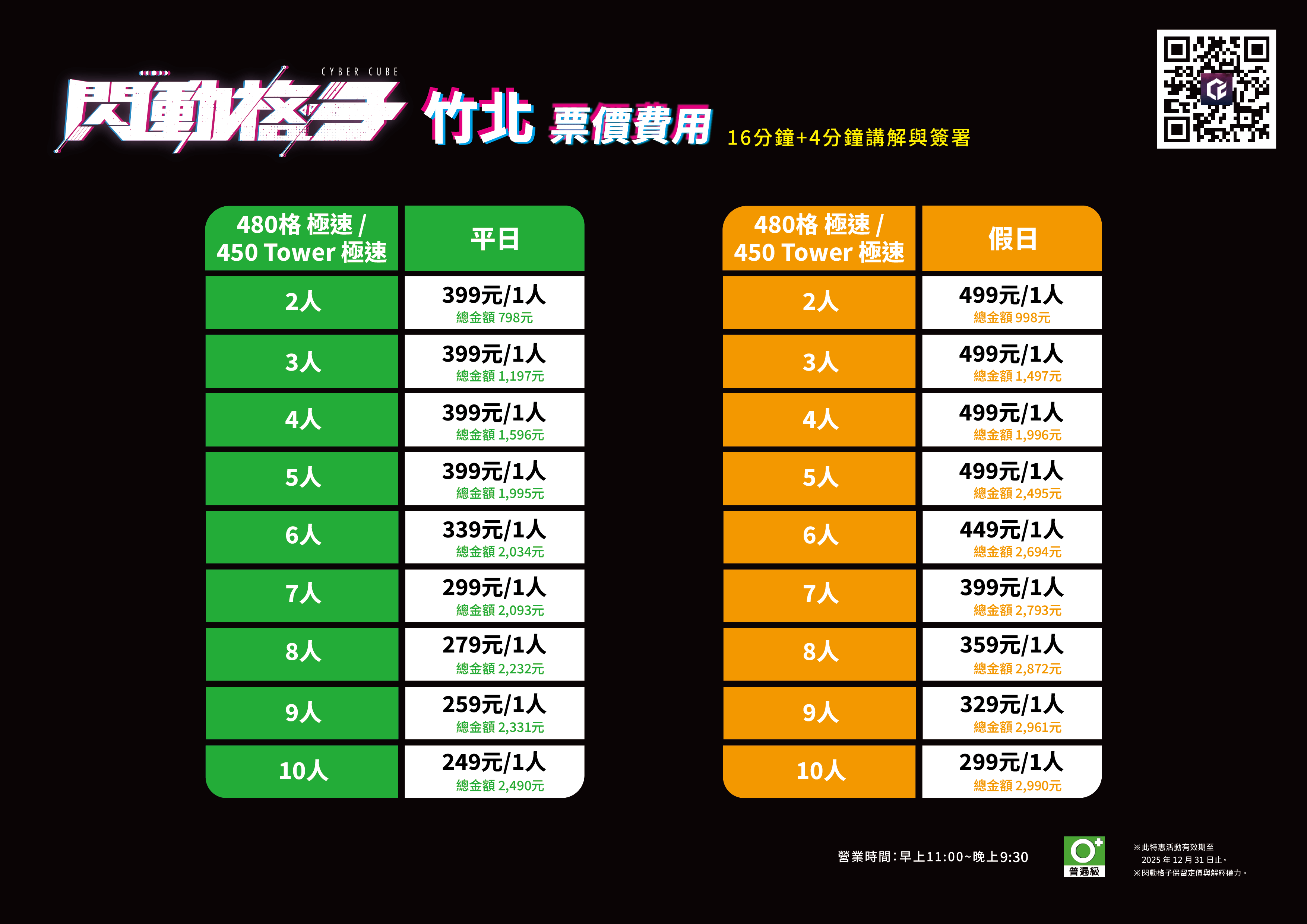 ▶︎ 未滿 18 歲的青少年必須由一位法定監護人陪同在場或攜帶簽署完成的聲明書,方可進入並體驗遊戲(未成年相關規定請參考官方網站)。