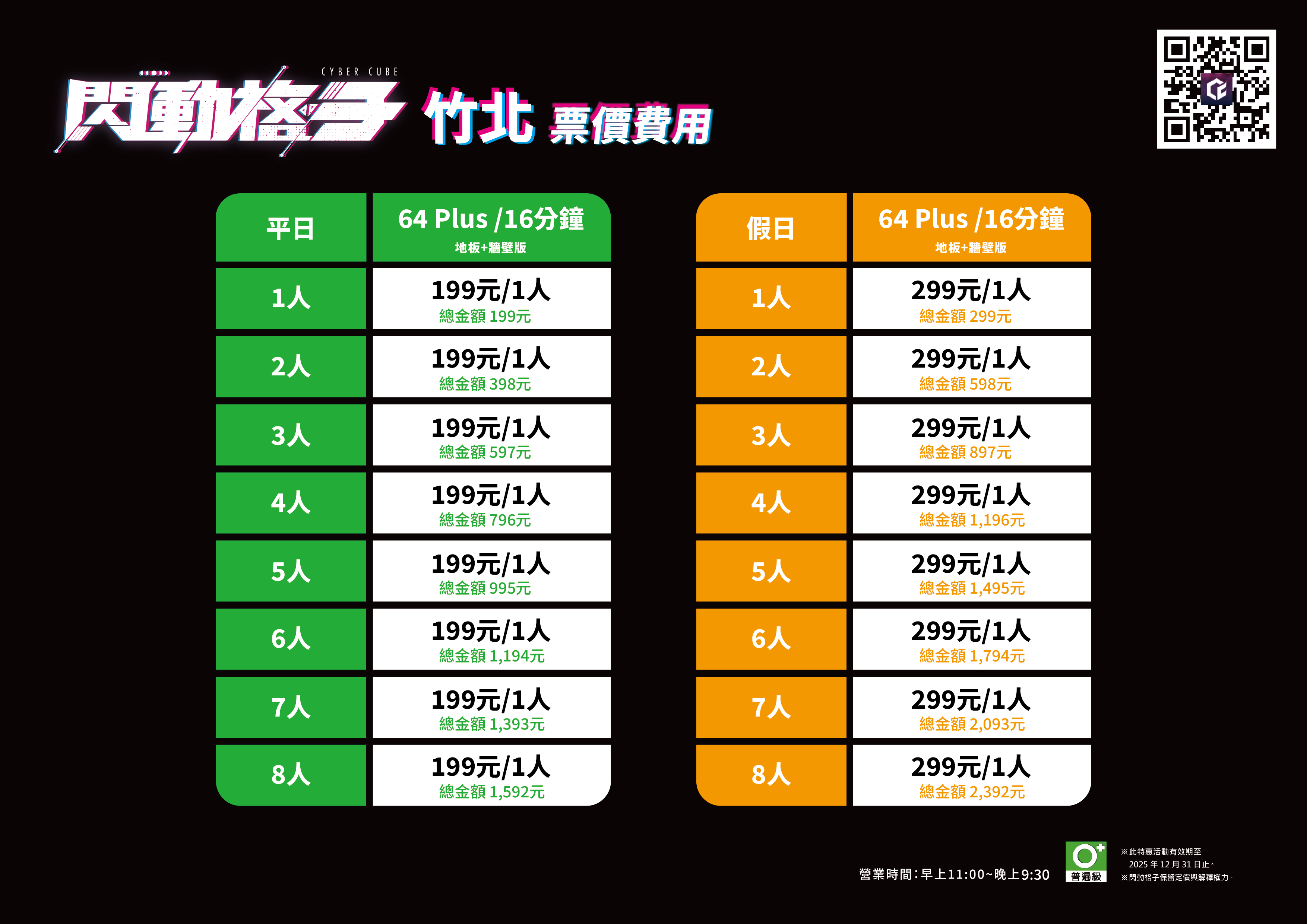 1. 僅可遊玩 64 格類型場域,需購買玩家票,並且全程由法定監護人陪同。