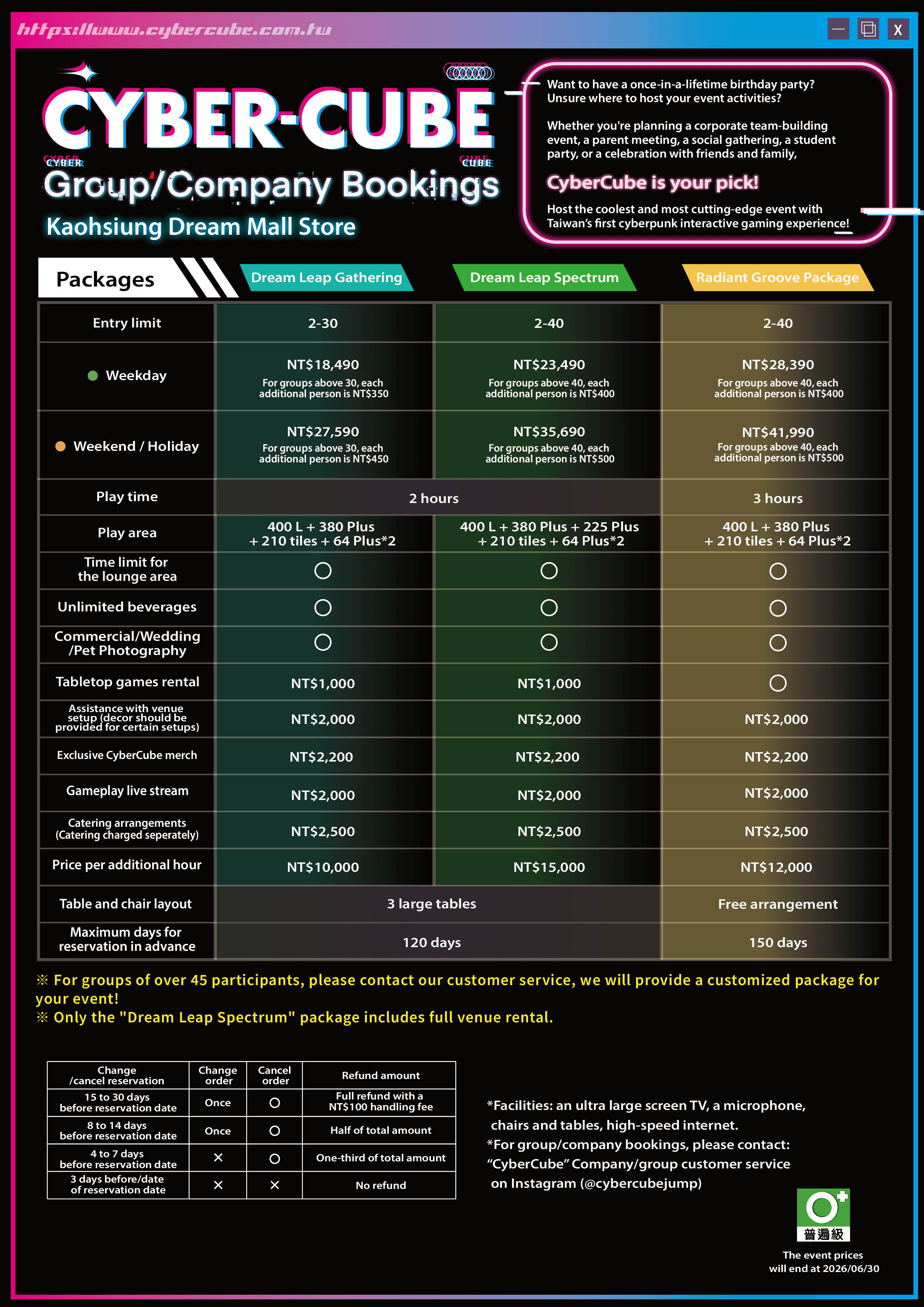 and add-on request as early as possible. Dream Leap Gathering includes a 2-hour experience, covering gameplay
