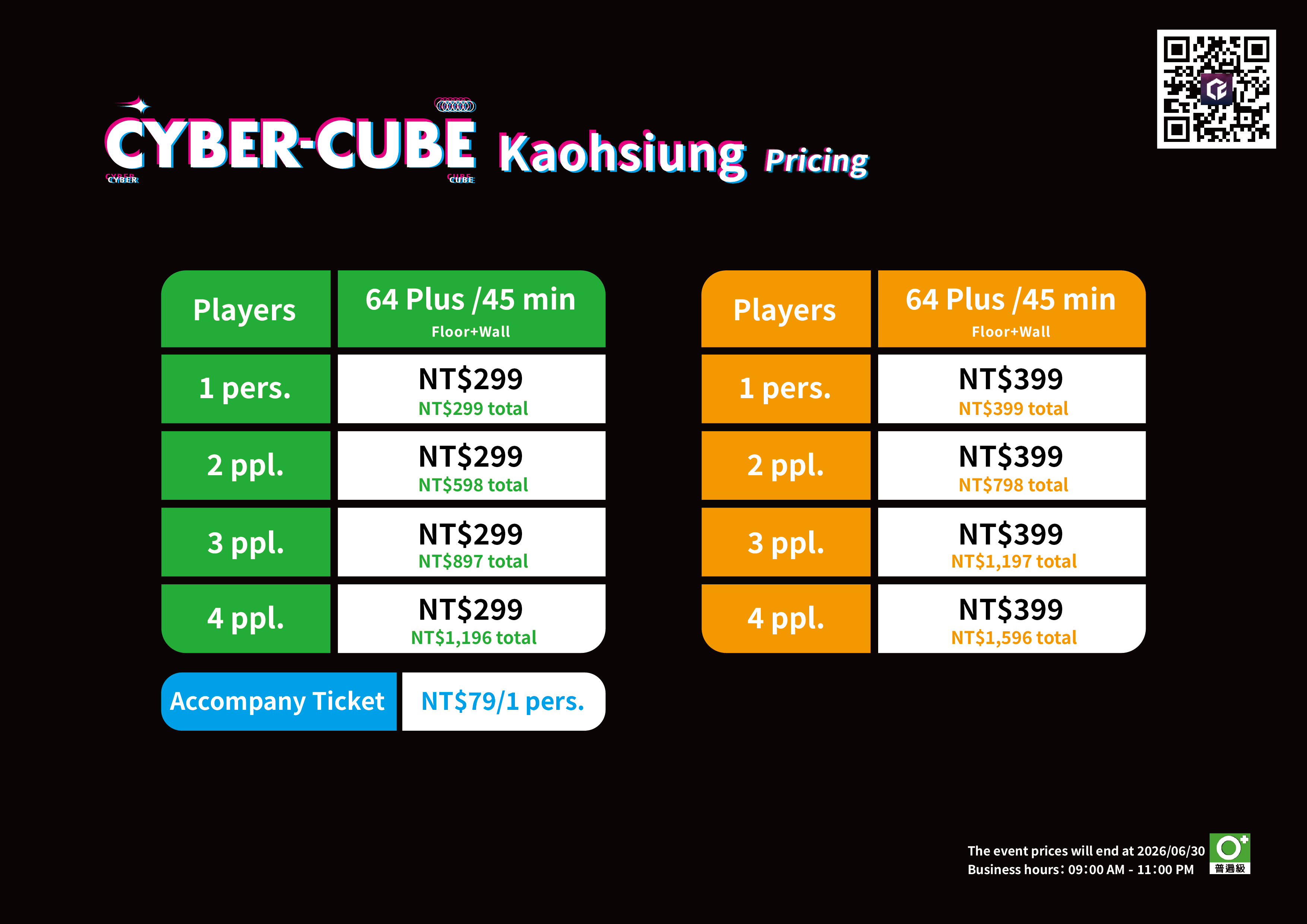 The reservation platform offers different discounted, regular, and busy hour prices. Please refer to the reservation website for the exact pricing. For more details, check the official website or promotional materials. CyberCube reserves the right to final pricing and interpretation.