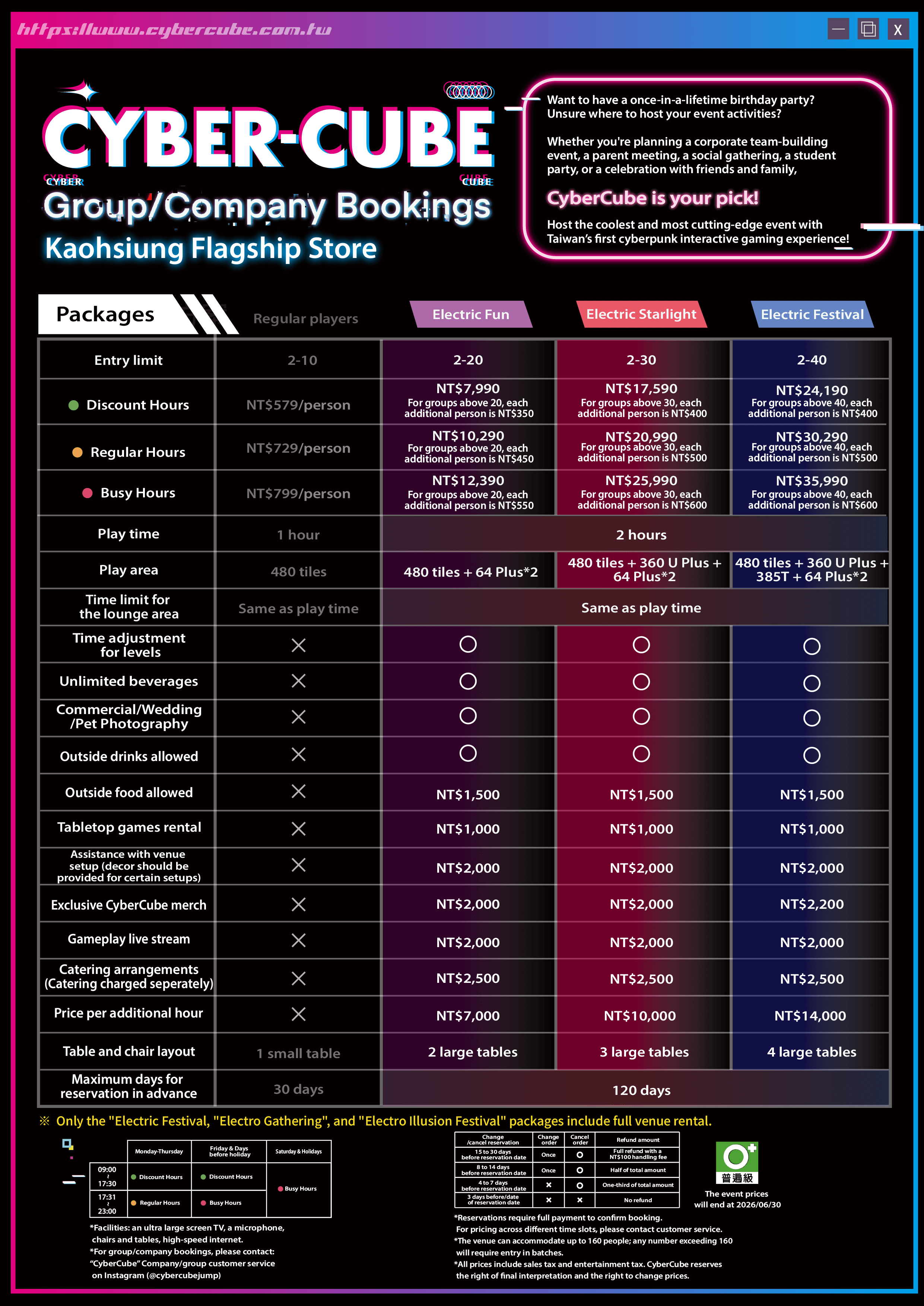 and add-on request as early as possible. Electric Starlight includes a 2-hour experience, covering gameplay