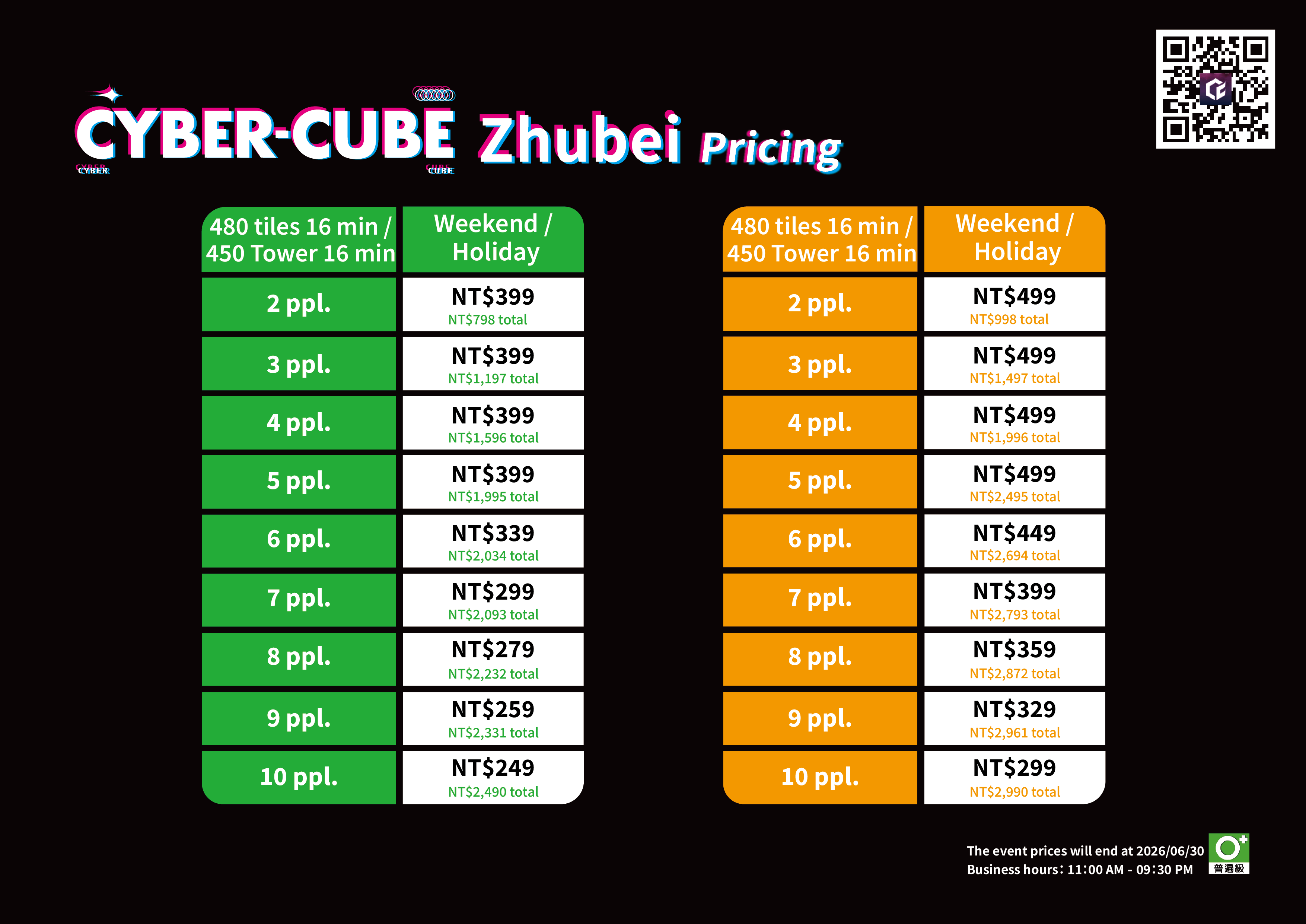 The reservation platform offers different discounted, regular, and busy hour prices. Please refer to the reservation website for the exact pricing. For more details, check the official website or promotional materials. CyberCube reserves the right to final pricing and interpretation.