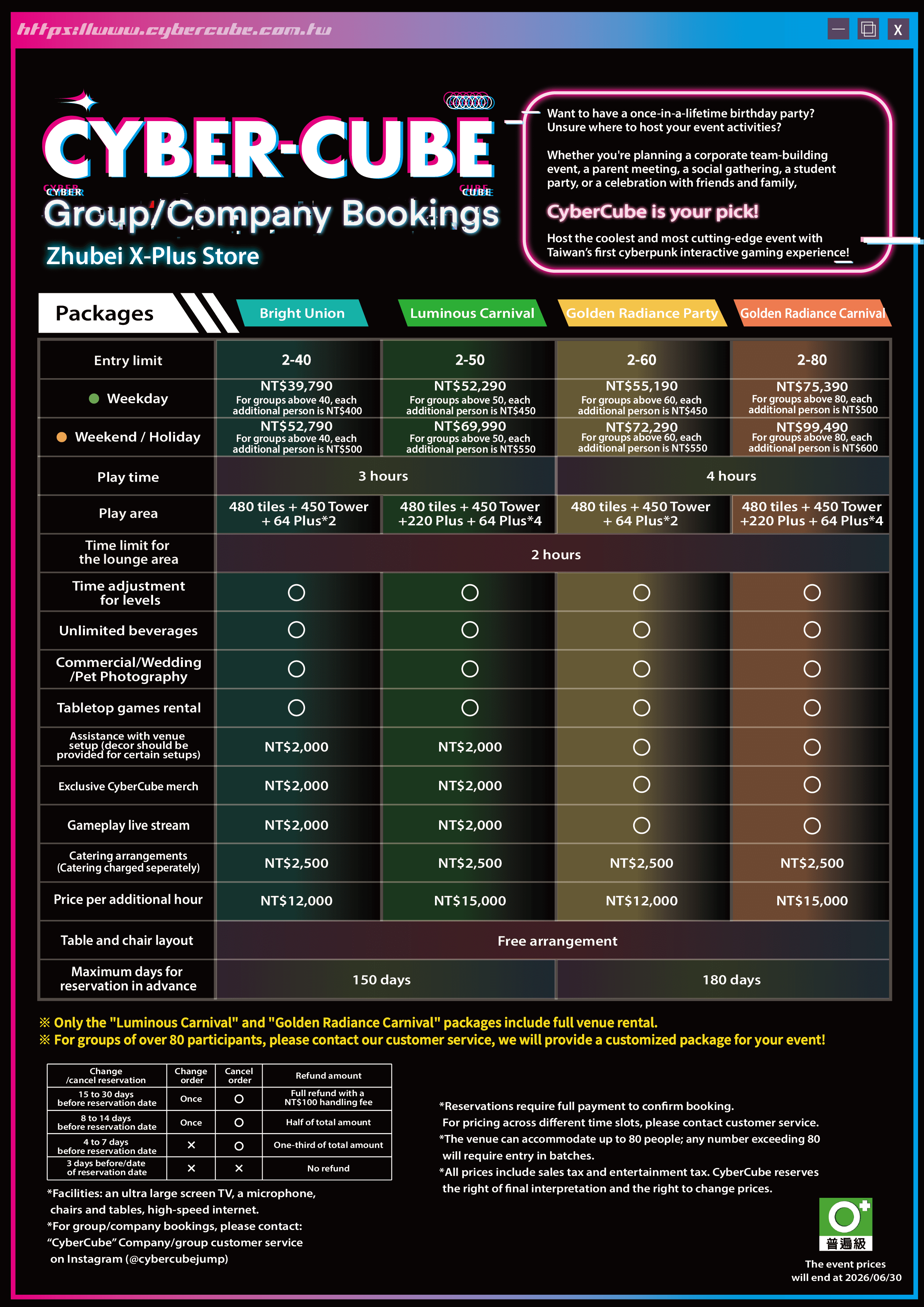and add-on request as early as possible. Bright Union Package includes a 3-hour experience, covering game