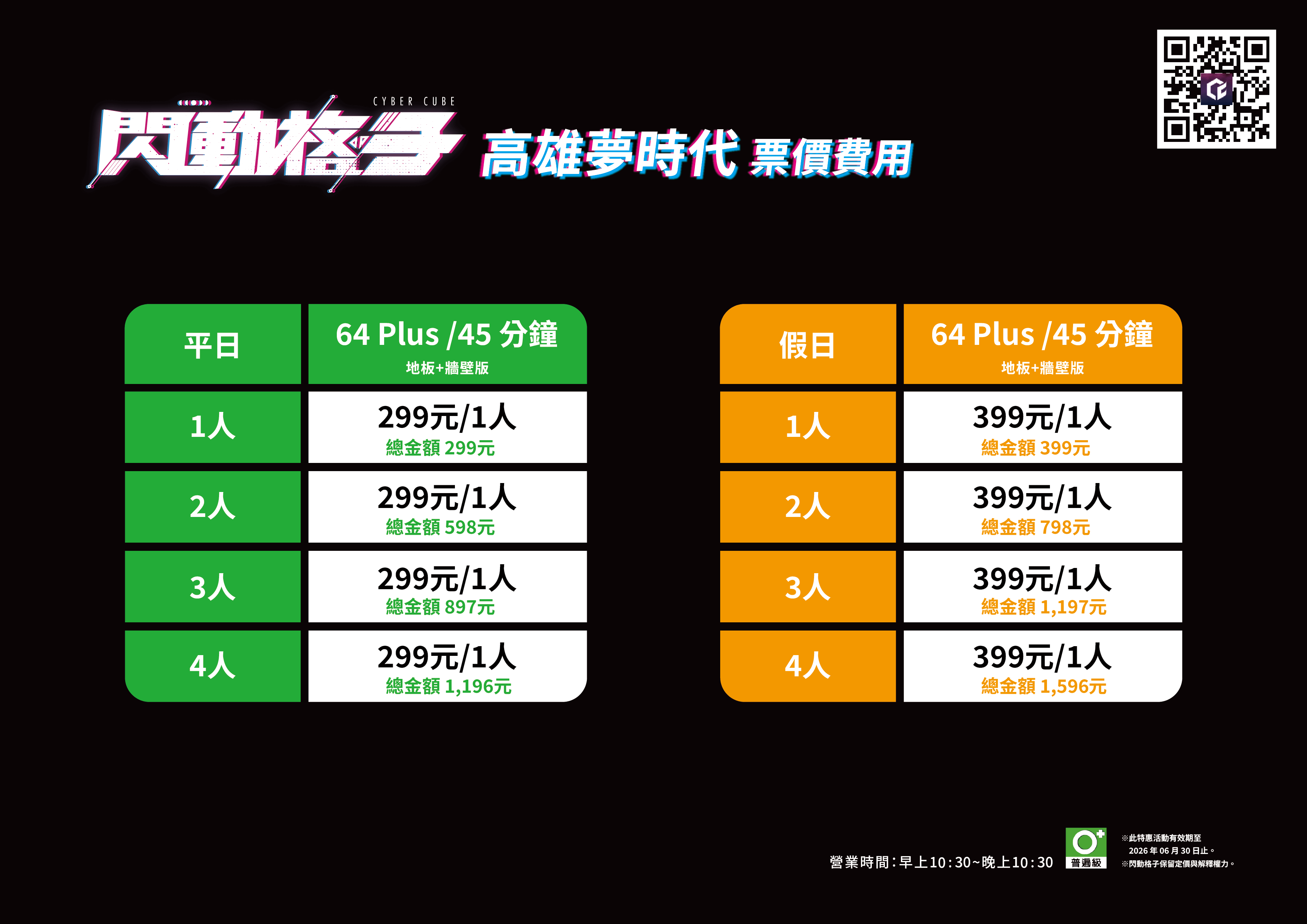 ▶︎ 未滿 18 歲的青少年必須由一位法定監護人陪同在場或攜帶簽署完成的聲明書,方可進入並體驗遊戲(未成年相關規定請參考官方網站)。