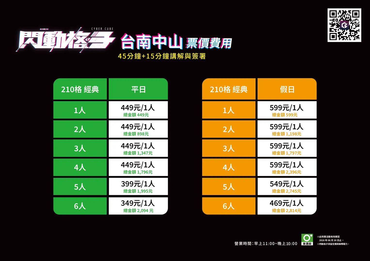 ▶︎ 未滿 18 歲的青少年必須由一位法定監護人陪同在場或攜帶簽署完成的聲明書,方可進入並體驗遊戲(未成年相關規定請參考官方網站)。