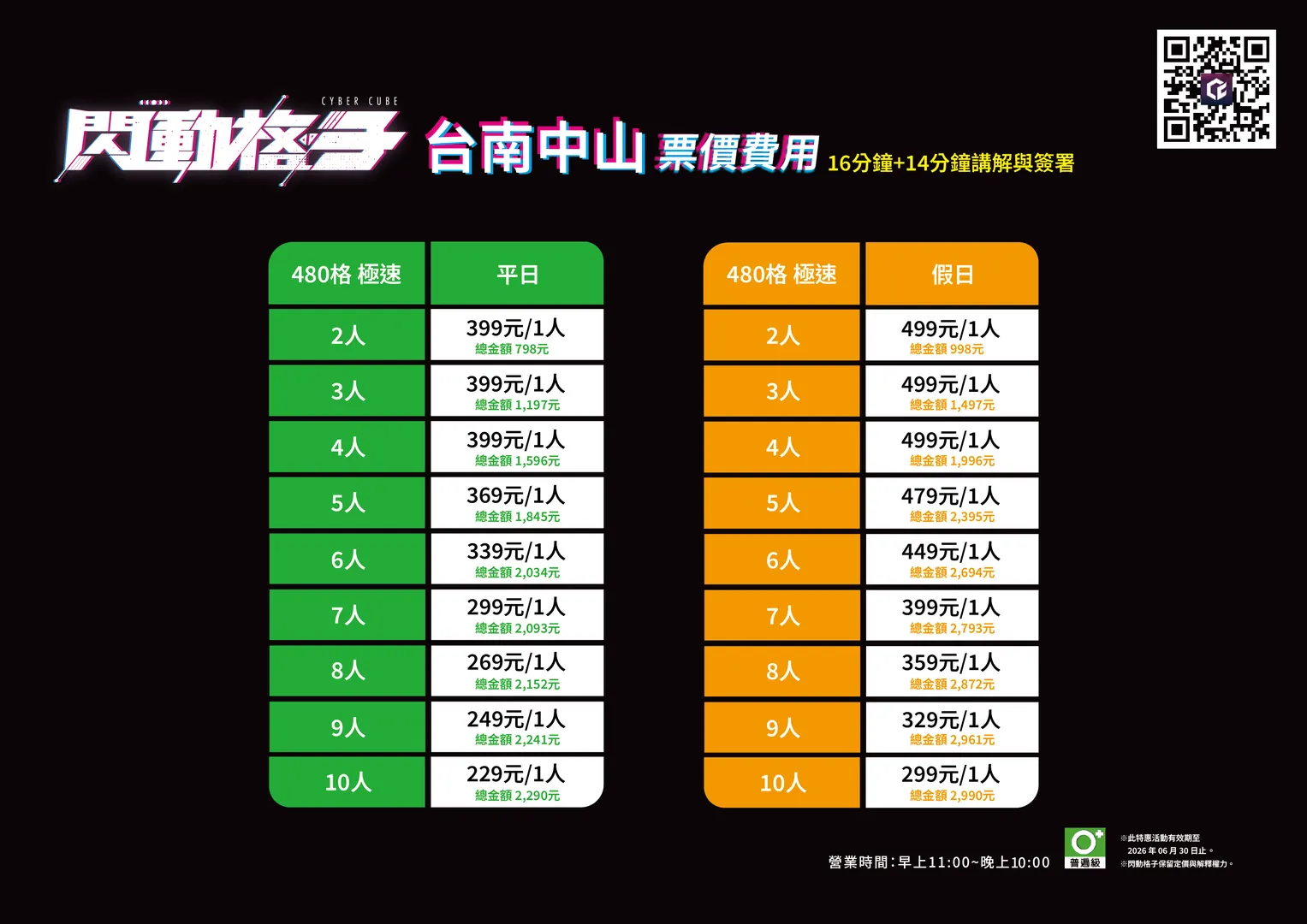 ▶︎ 未滿 18 歲的青少年必須由一位法定監護人陪同在場或攜帶簽署完成的聲明書,方可進入並體驗遊戲(未成年相關規定請參考官方網站)。