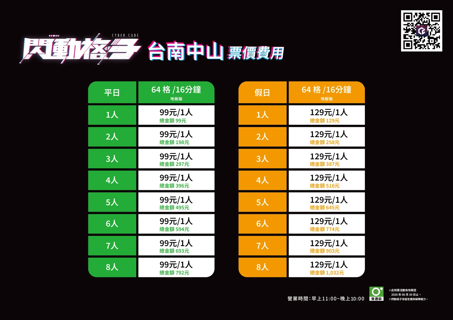 官方預約平台提供不同時段的優惠價格,具體費用請依照預約網站呈現為主,更多詳情請參考官方網站或宣傳品。「閃動格子」保留最終的訂價和解釋權利。