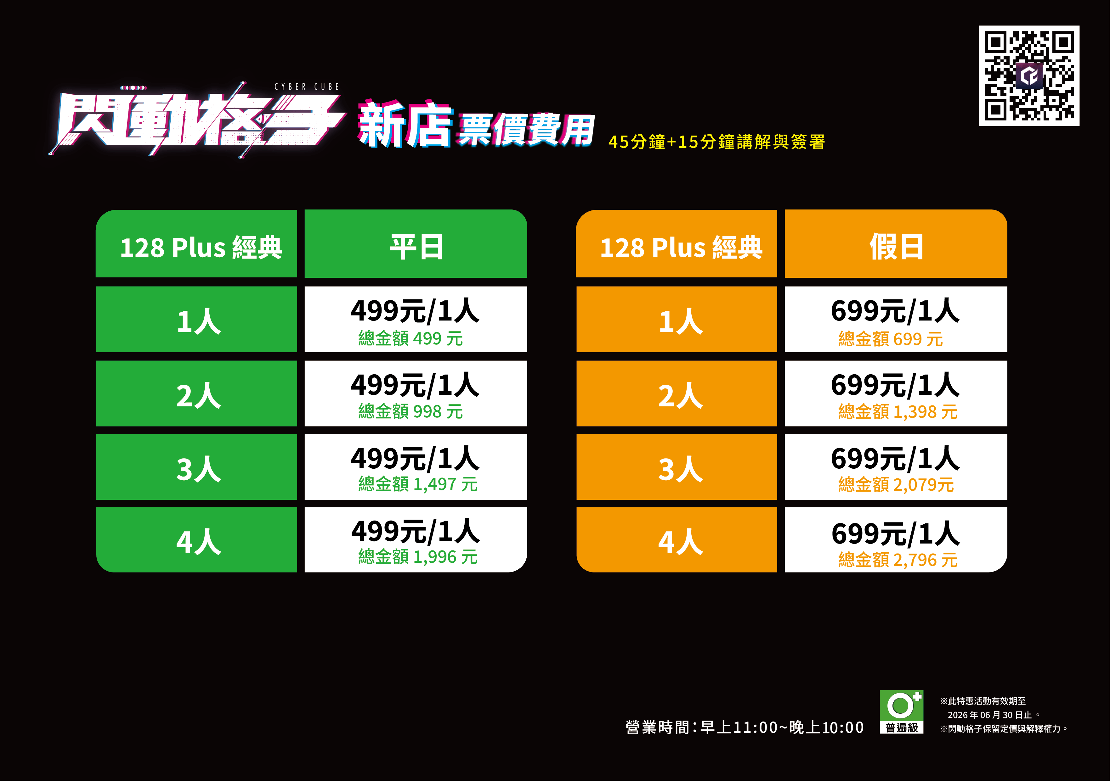 ▶︎ 未滿 18 歲的青少年必須由一位法定監護人陪同在場或攜帶簽署完成的聲明書,方可進入並體驗遊戲(未成年相關規定請參考官方網站)。