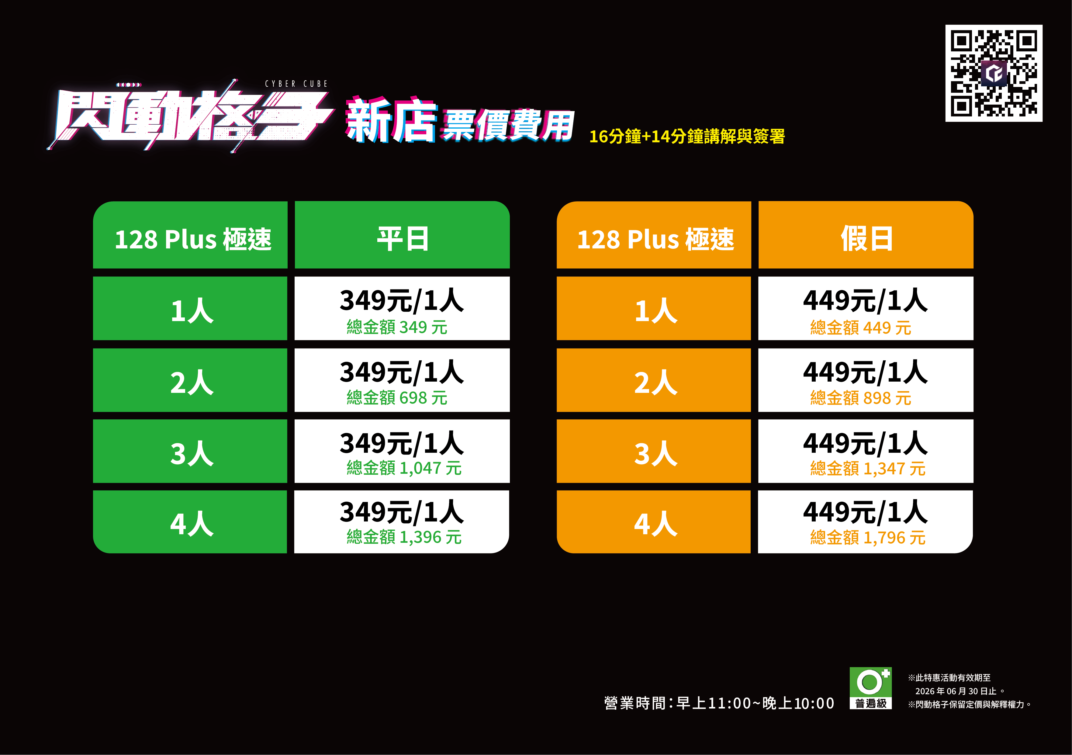 ▶︎ 未滿 18 歲的青少年必須由一位法定監護人陪同在場或攜帶簽署完成的聲明書,方可進入並體驗遊戲(未成年相關規定請參考官方網站)。