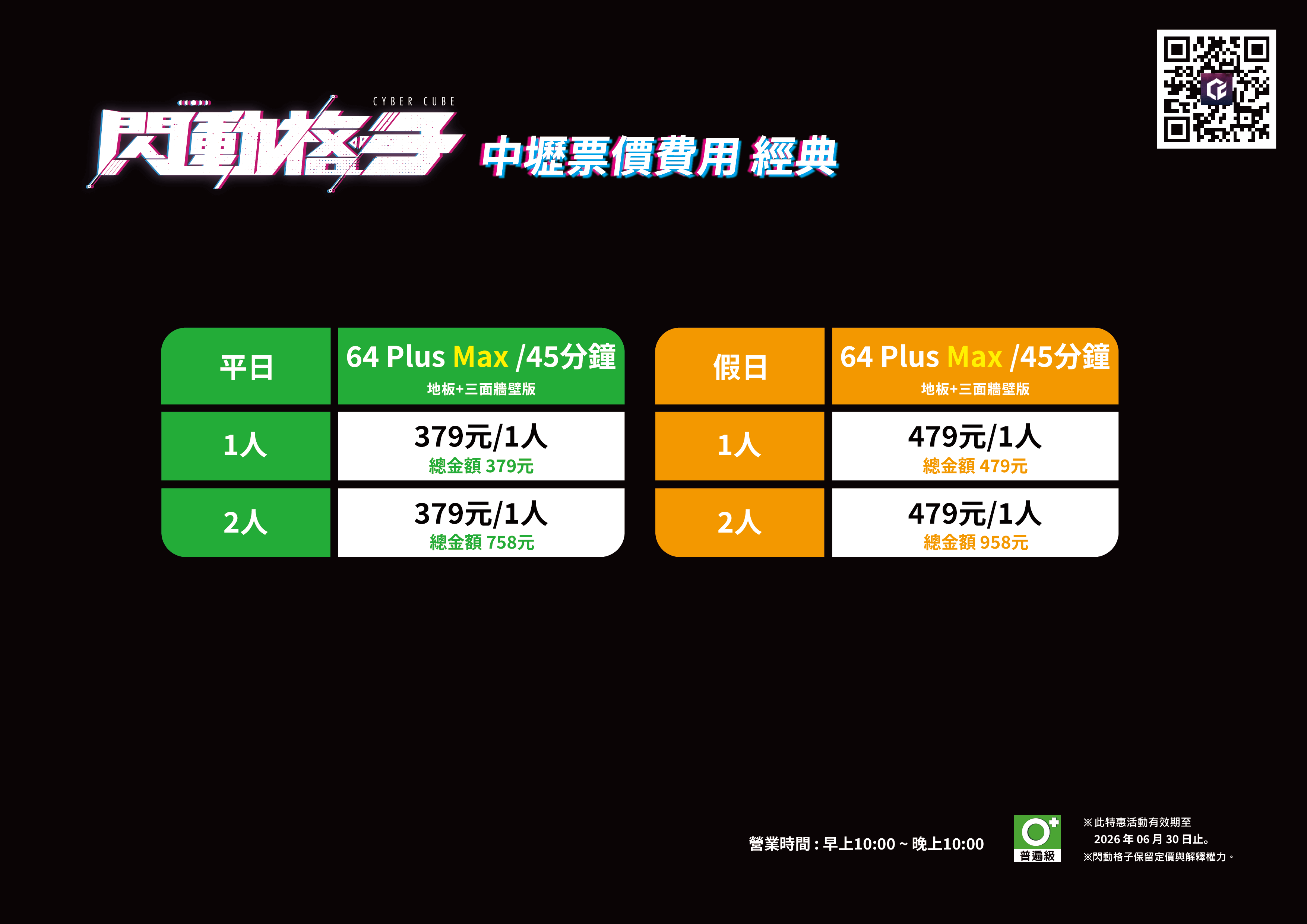 1. 購買玩家票挑戰64格類型場域,需由法定監護人全程陪同。